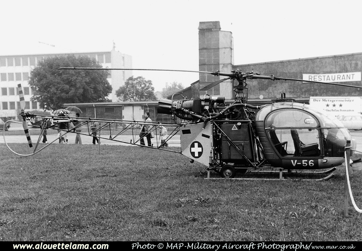 | V-56 Eurocopter SE3130 Alouette II MSN 1902, Swiss Air Force - Dübendorf - LSMD - 28-08-1976. |