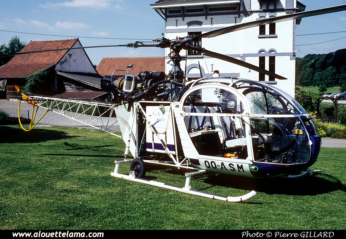 | OO-ASM Eurocopter SE3130 Alouette II MSN 1920, Alpha Aviation - Petite Somme - 22-07-2004. |