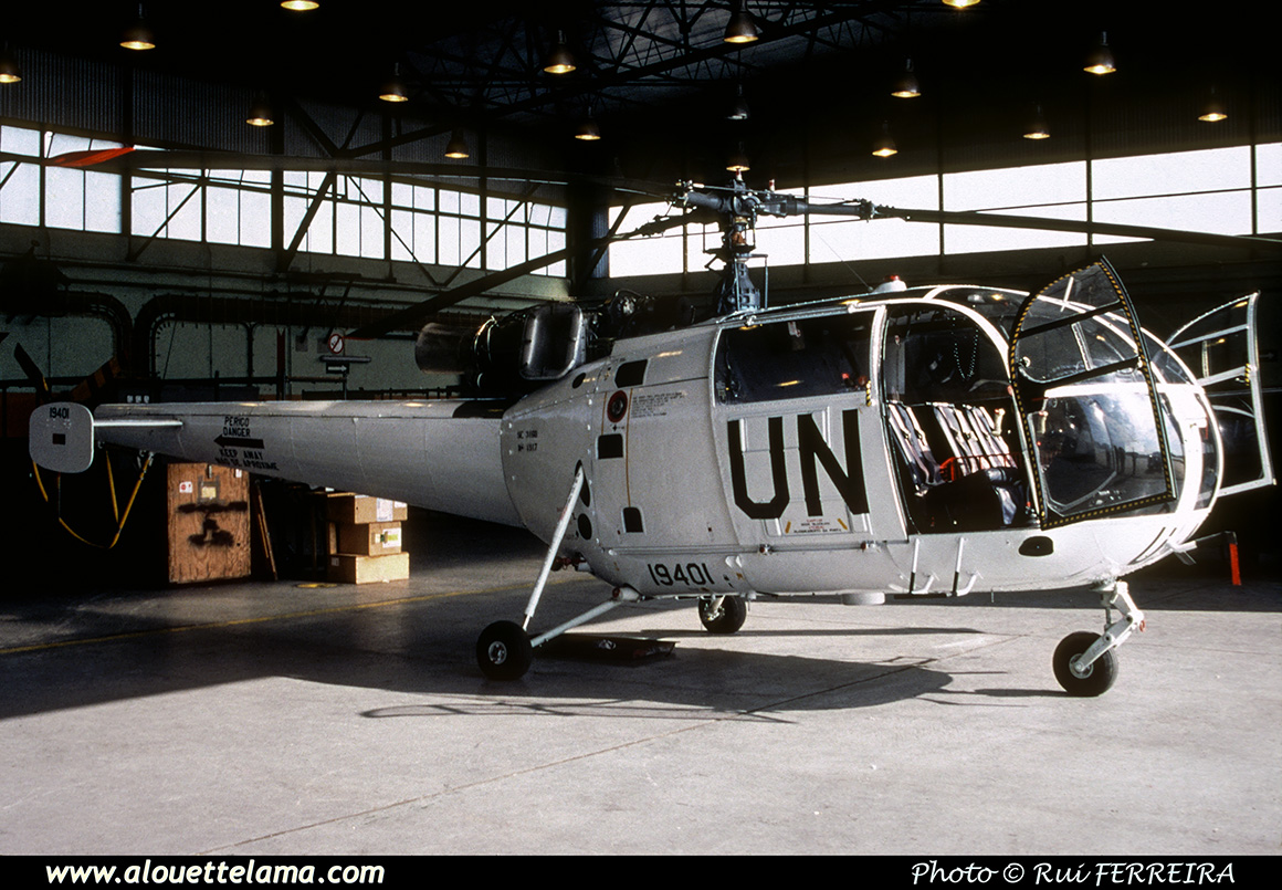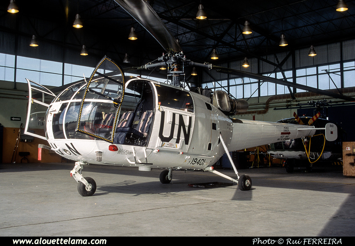 | 19401 Eurocopter SE3160 Alouette III MSN 1917, Portuguese Air Force, United Nations - Beja - LPBJ - 2001. |