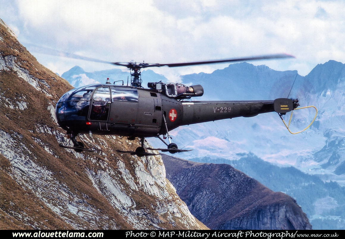 | V-229 F+W Emmen (Eurocopter) SE-3160 Alouette III MSN 105/1051, Swiss Air Force - Axalp. |
