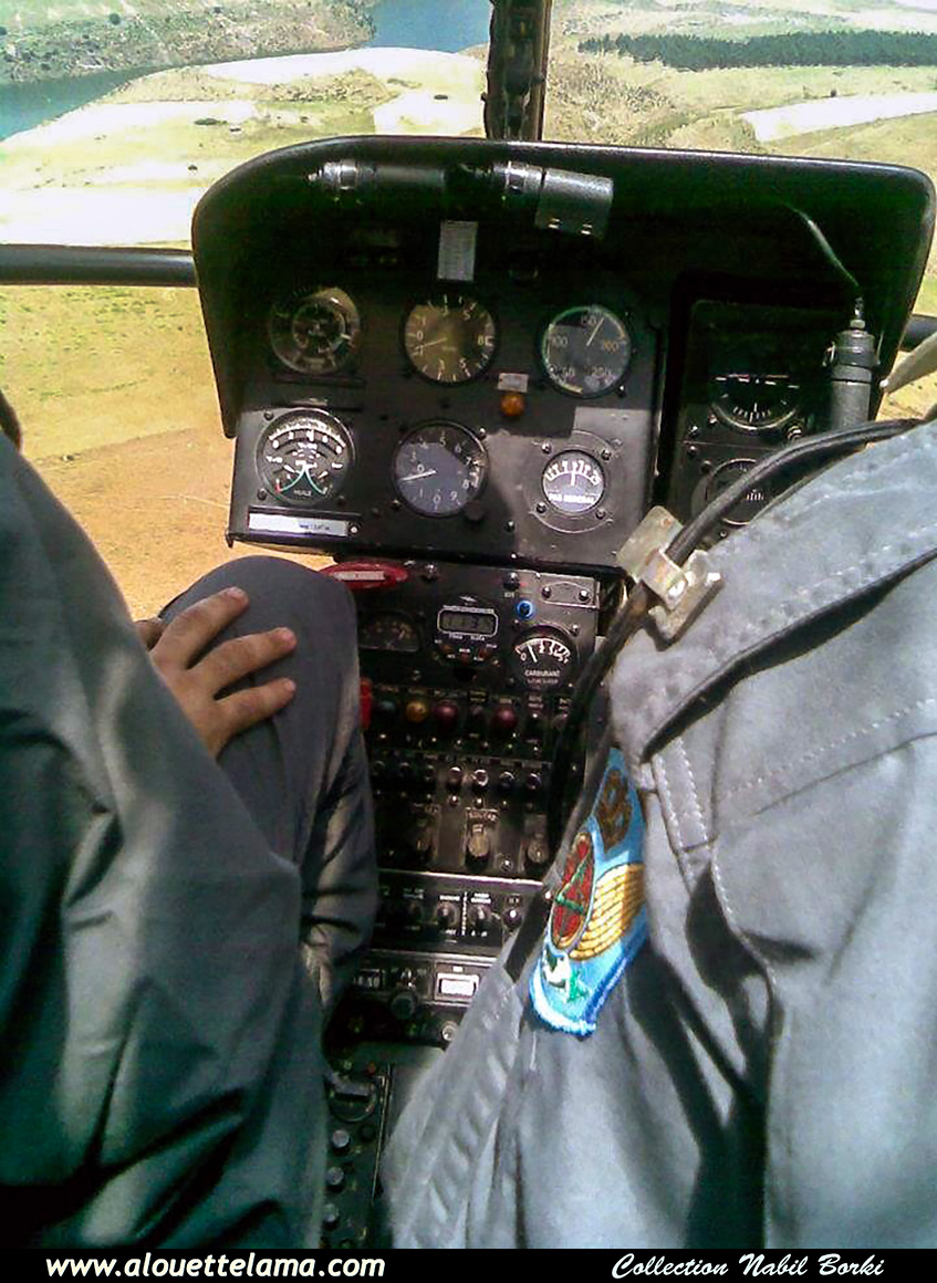 | Tableau de bord d'une Alouette II de la Gendarmerie Royale Marocaine en vol. |