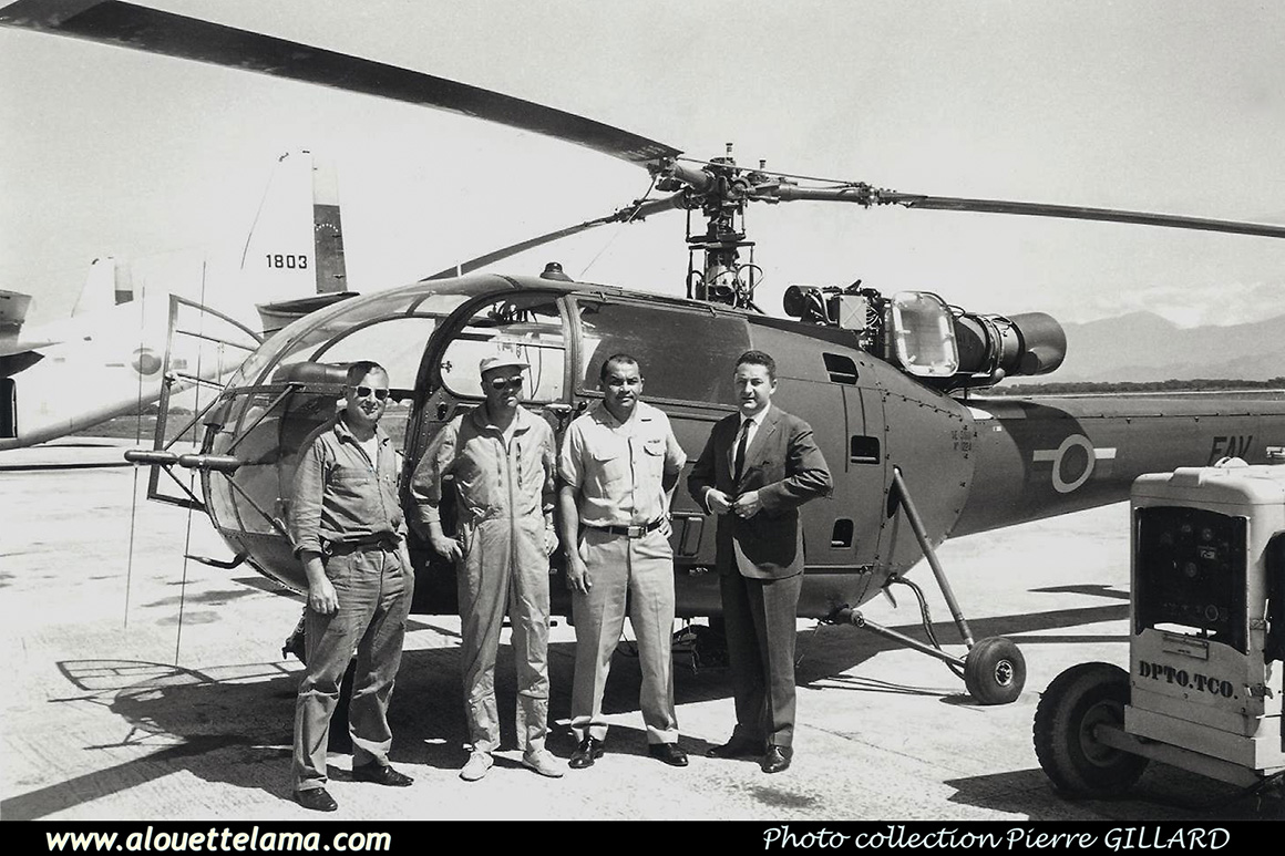 | 0093(?) Eurocopter SE3160 Alouette III MSN 1224, Venezuelan Air Force - Caracas. Le pilote en tenue de vol est Gérard Henry, pilote d'essais de Sud Aviation. Les autres personnes ne sont pas identifiées. The pilot in flight suits is Gérard Henry, a test pilot for Sud Aviation. The other people are not identified. |