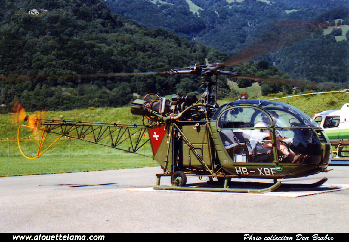 | HB-XBF Eurocopter SE3130 Alouette II MSN 1236, Jon Jachen Flura & Frantz Conrad - Sion - LSGS - 07-1999. |