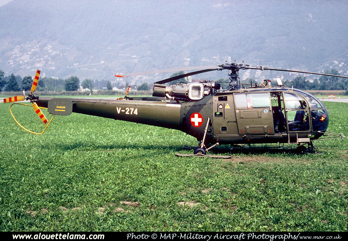 | V-274 F+W Emmen (Eurocopter) SE3160 Alouette III MSN 150/1096, Swiss Air Force - Switzerland - 1989. |