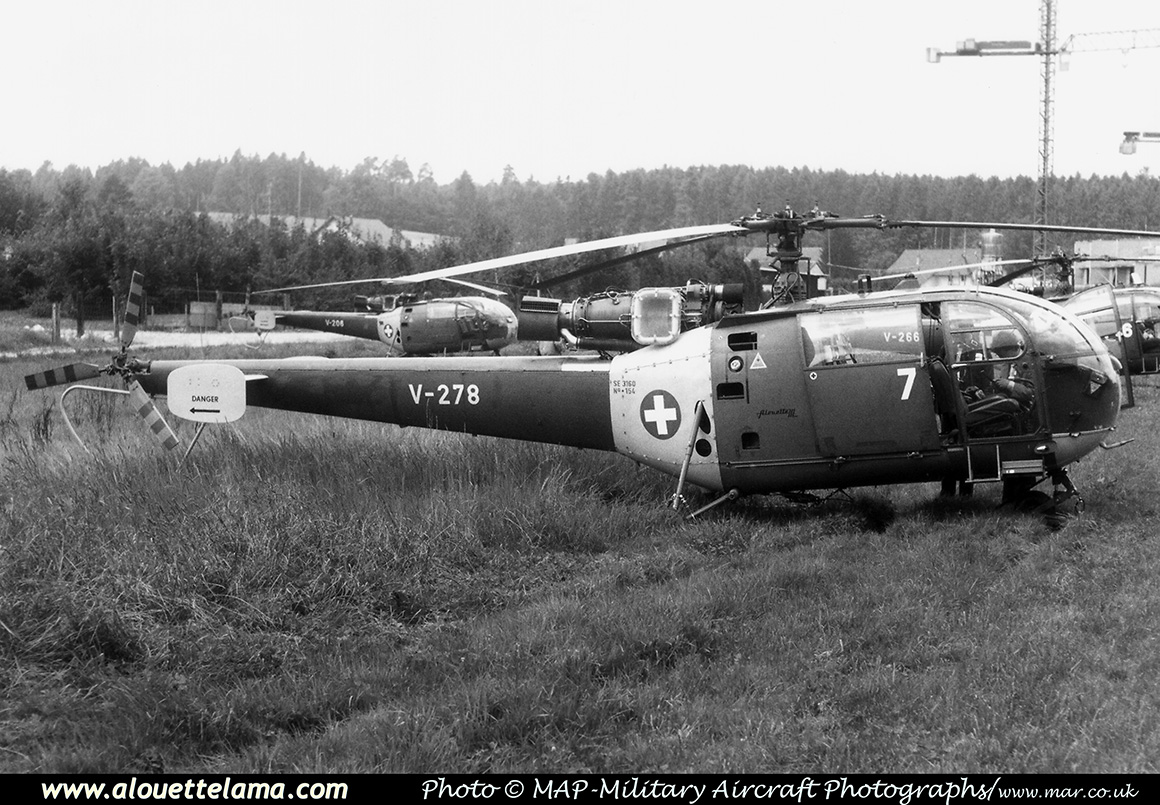 | V-278/7 F+W Emmen (Eurocopter) SE3160 Alouette III MSN 154/1100, Swiss Air Force - Switzerland - 1980. |