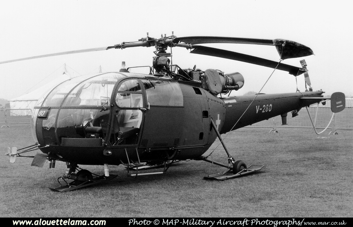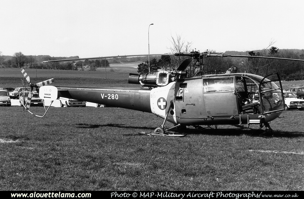 | V-280 F+W Emmen (Eurocopter) SE3160 Alouette III MSN 156/1102, Swiss Air Force - Switzerland - 1978. |